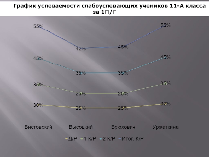 Слайд 23График успеваемости слабоуспевающих учеников 11-А класса за 1П/Г
