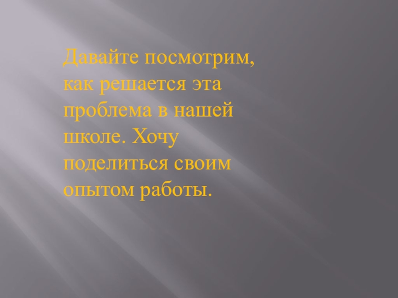 Слайд 12Давайте посмотрим, как решается эта проблема в нашей школе. Хочу поделиться