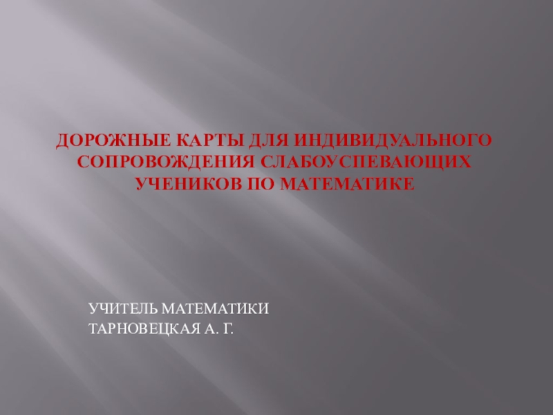 Слайд 1ДОРОЖНЫЕ КАРТЫ ДЛЯ ИНДИВИДУАЛЬНОГО СОПРОВОЖДЕНИЯ СЛАБОУСПЕВАЮЩИХ УЧЕНИКОВ ПО МАТЕМАТИКЕ