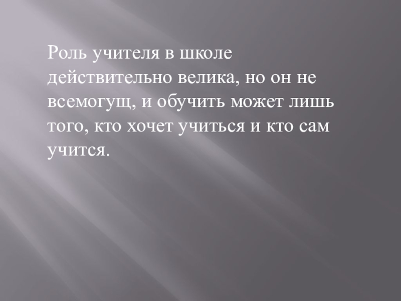 Слайд 19Роль учителя в школе действительно велика, но он не всемогущ, и
