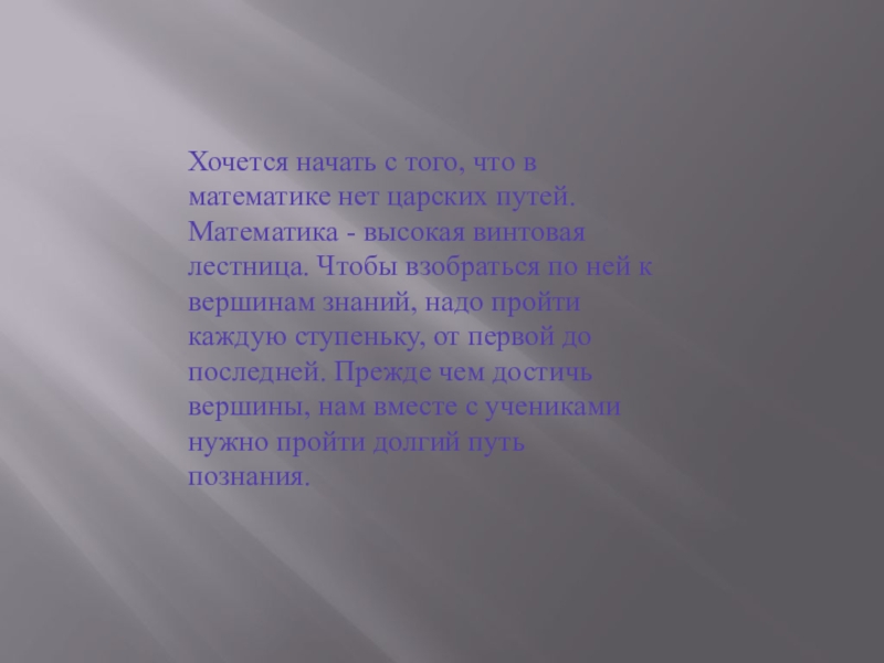 Слайд 2Хочется начать с того, что в математике нет царских путей. Математика