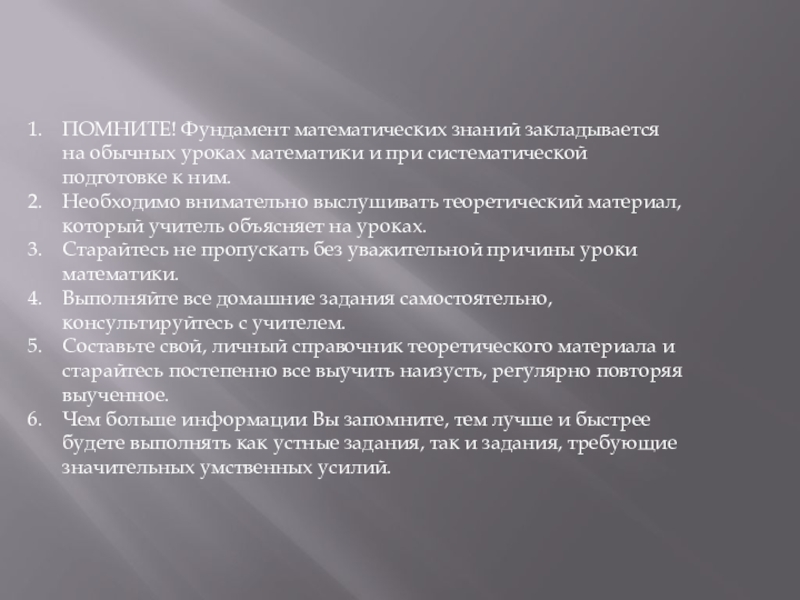 Слайд 15ПОМНИТЕ! Фундамент математических знаний закладывается на обычных уроках математики и при