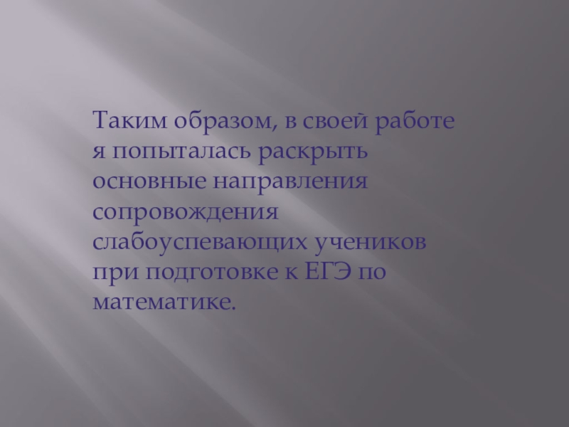 слабоуспевающих учеников при подготовке к ЕГЭ по математике.