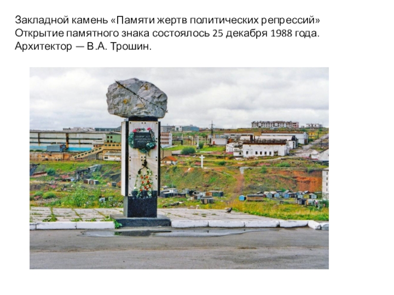 Слайд 10Закладной камень «Памяти жертв политических репрессий»