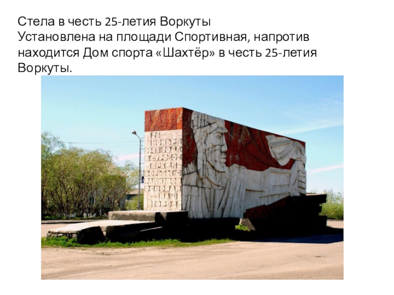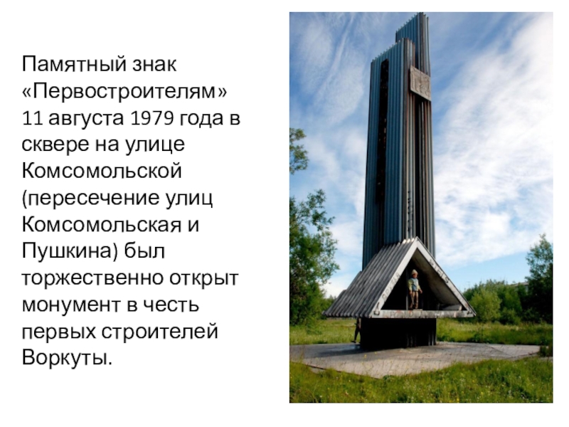 улиц Комсомольская и Пушкина) был торжественно открыт монумент в честь первых строителей Воркуты.