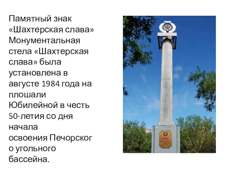 Монументальная стела «Шахтерская слава» была установлена в августе 1984