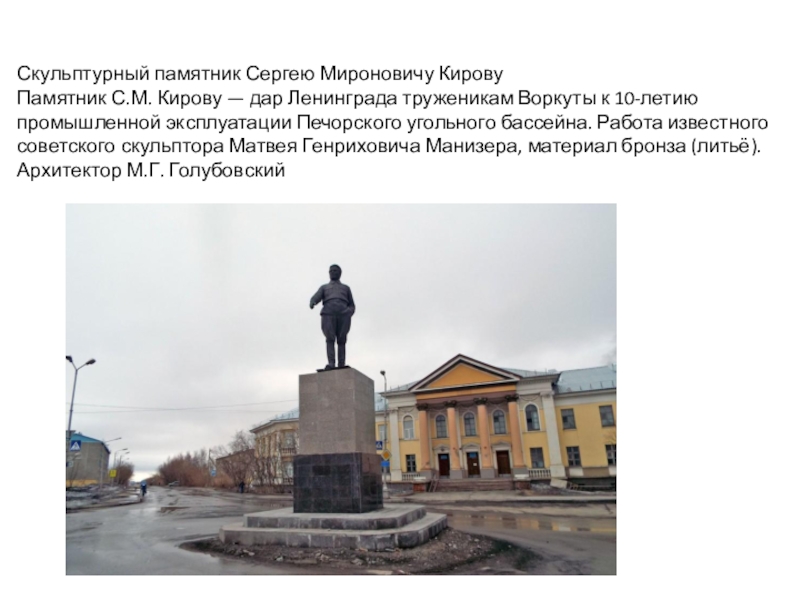 Слайд 9Скульптурный памятник Сергею Мироновичу Кирову
