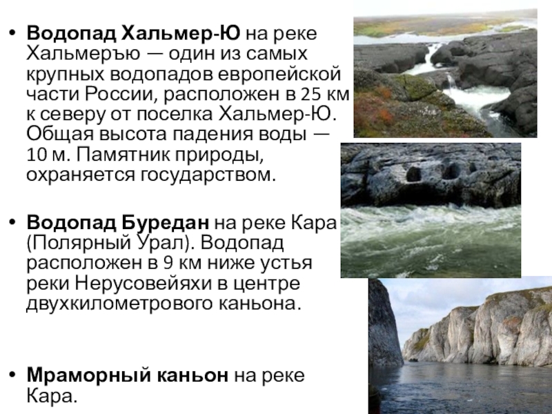 Слайд 20Водопад Хальмер-Ю на реке Хальмеръю — один из самых крупных водопадов