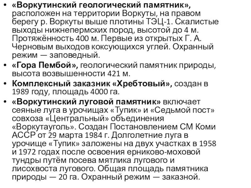 Слайд 18«Воркутинский геологический памятник», расположен на территории Воркуты, на правом берегу р.