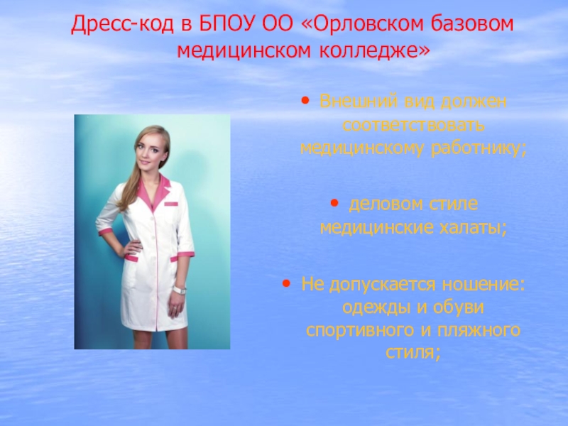 Слайд 9Дресс-код в БПОУ ОО «Орловском базовом медицинском колледже»