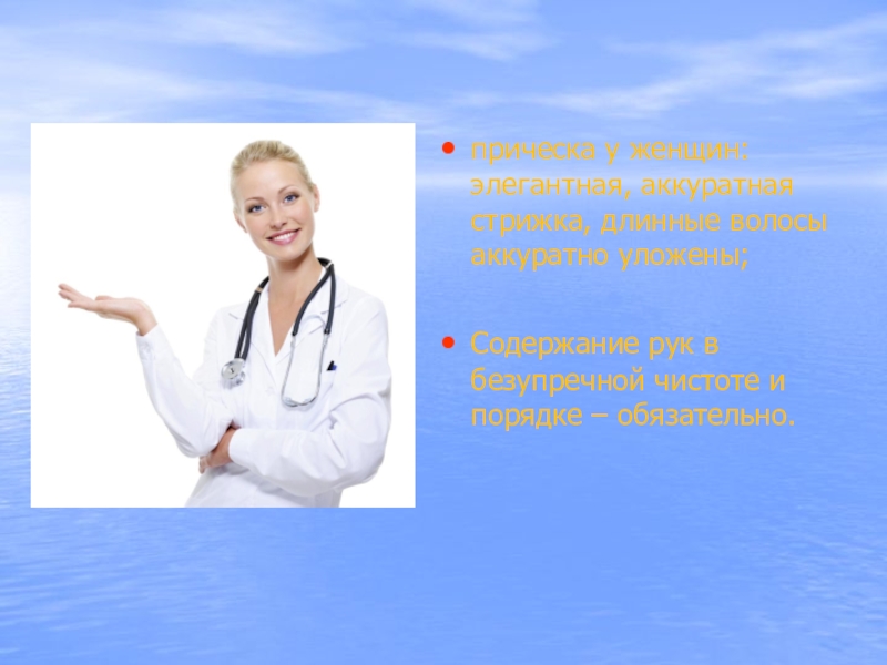 Слайд 11прическа у женщин: элегантная, аккуратная стрижка, длинные волосы аккуратно уложены;