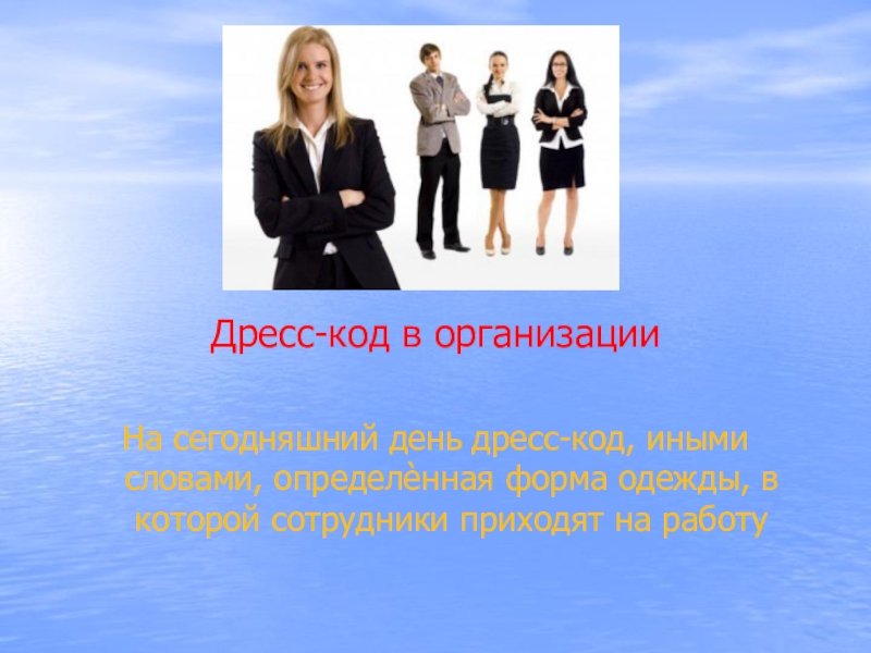 Дресс-код в организацииНа сегодняшний день дресс-код, иными словами, определѐнная форма одежды, в которой сотрудники приходят на работу