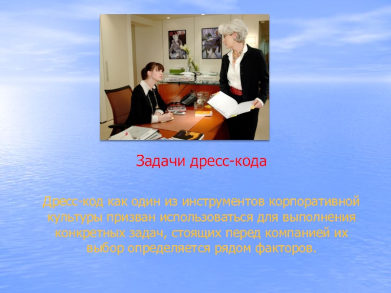 Задачи дресс-кодаДресс-код как один из инструментов корпоративной культуры призван использоваться для выполнения конкретных задач, стоящих перед компанией