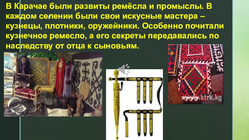 Слайд 14В Карачае были развиты ремёсла и промыслы. В каждом селении были