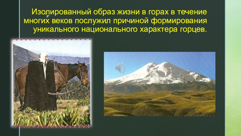 Слайд 6Изолированный образ жизни в горах в течение многих веков послужил причиной