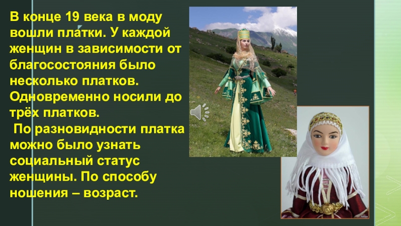 Слайд 20В конце 19 века в моду вошли платки. У каждой женщин