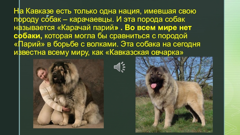 Слайд 17На Кавказе есть только одна нация, имевшая свою породу собак –