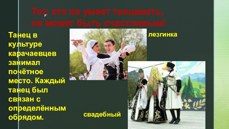 карачаевцев занимал почётное место. Каждый танец был связан с определённым обрядом.