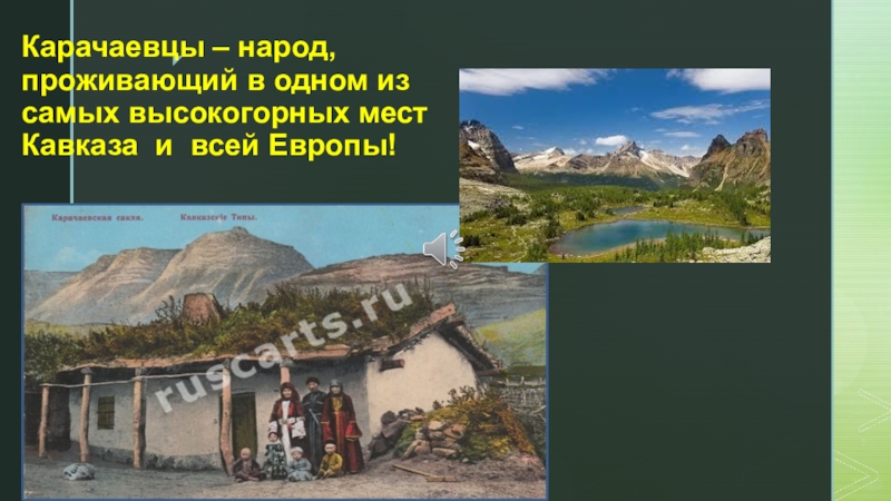 Слайд 3Карачаевцы – народ, проживающий в одном из самых высокогорных мест Кавказа