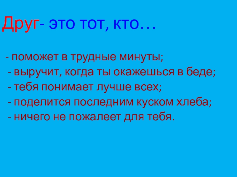 Друг – человек, близкий вам по духу, по убеждениям, на