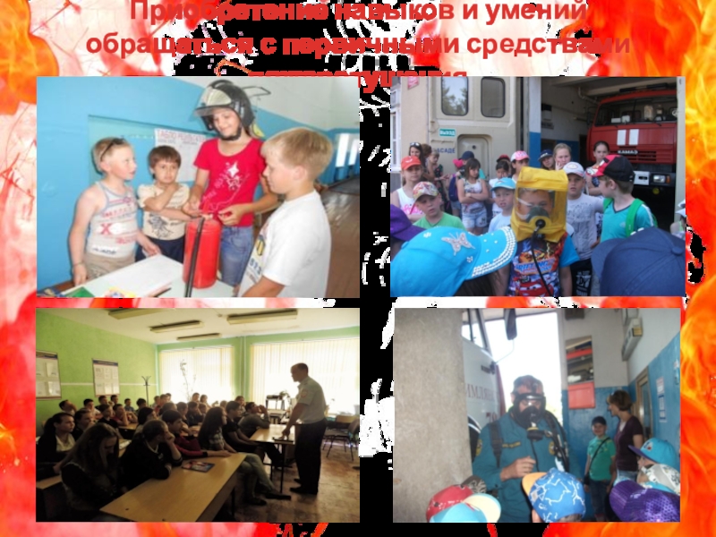 Слайд 8Приобретение навыков и умений обращаться с первичными средствами пожаротушения