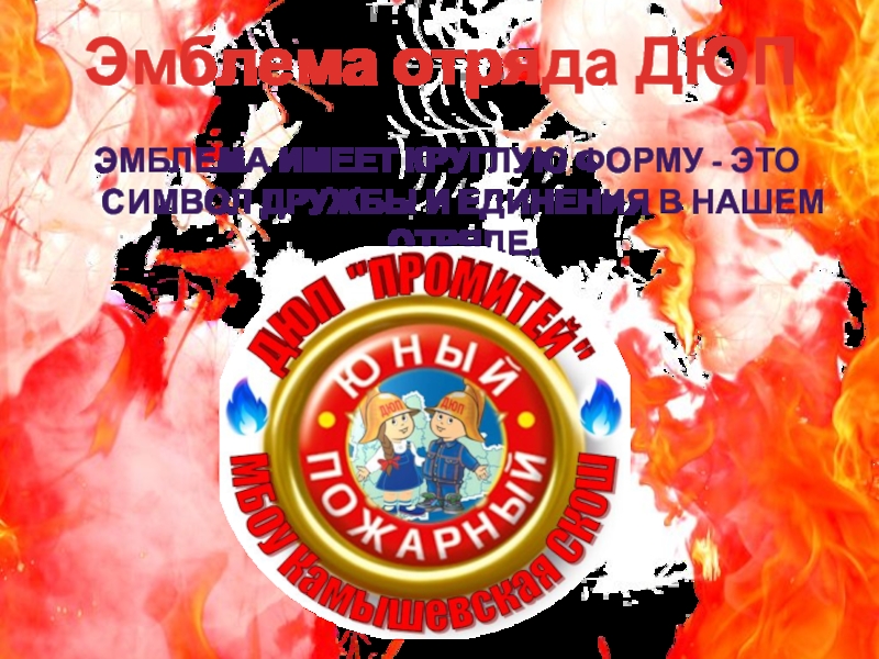 Эмблема отряда ДЮПЭмблема имеет круглую форму - это символ дружбы и единения в нашем отряде.