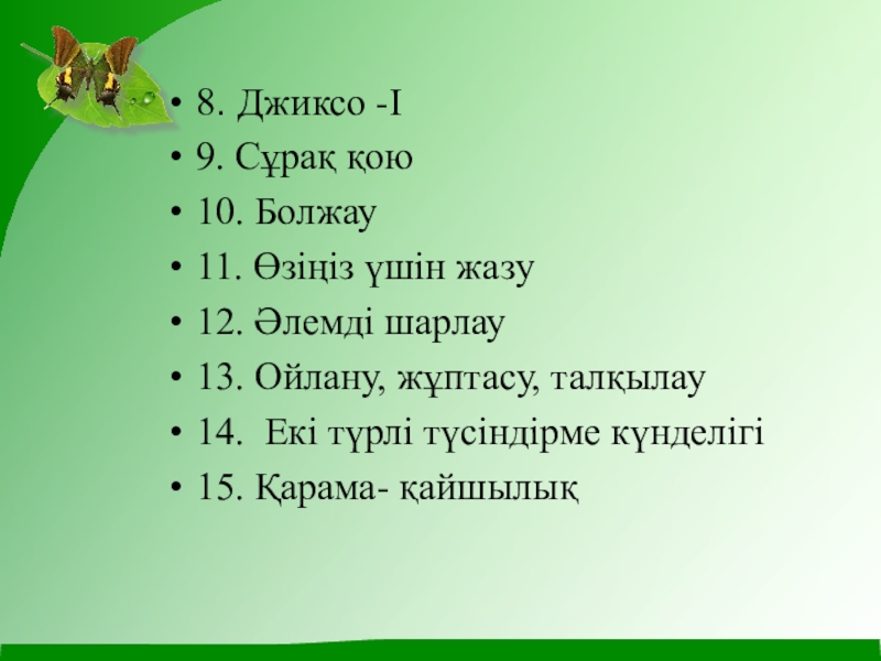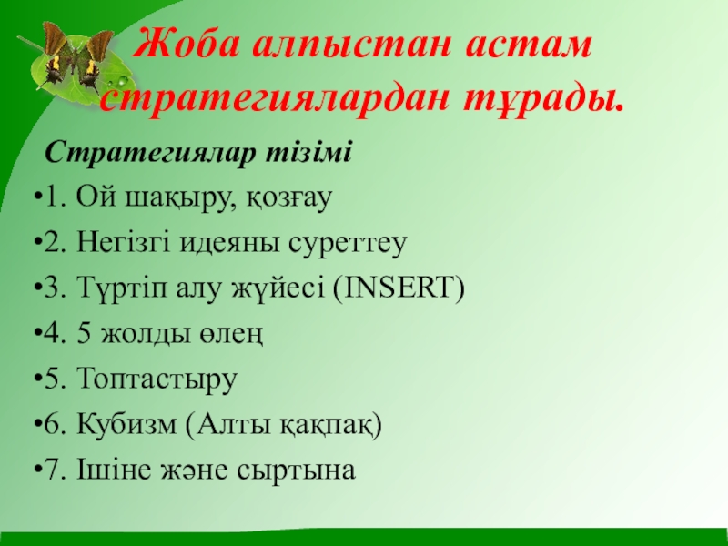 Слайд 15Жоба алпыстан астам стратегиялардан тұрады.