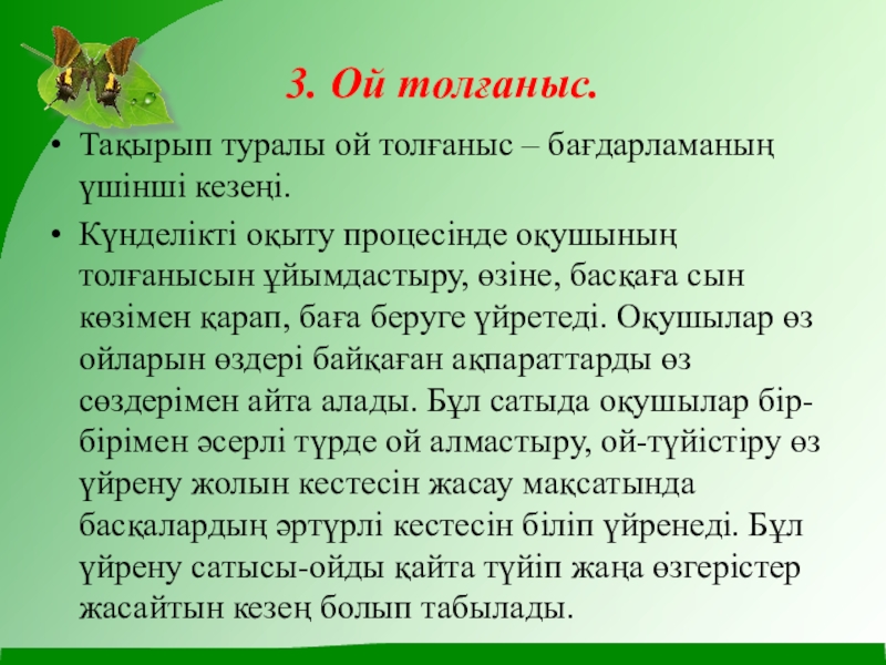 Тақырып туралы ой толғаныс – бағдарламаның үшінші кезеңі.