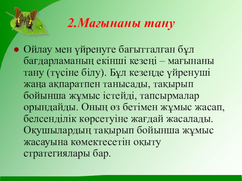 Ойлау мен үйренуге бағытталған бұл бағдарламаның екінші кезеңі – мағынаны