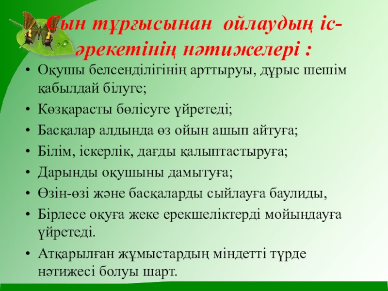 Сын тұрғысынан ойлаудың іс-әрекетінің нәтижелері :