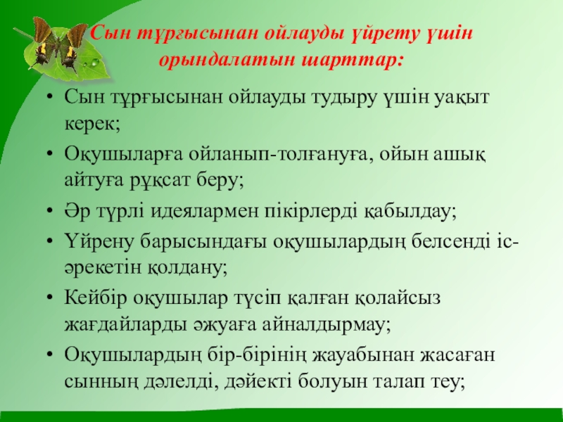 Сын тұрғысынан ойлауды үйрету үшін орындалатын шарттар: