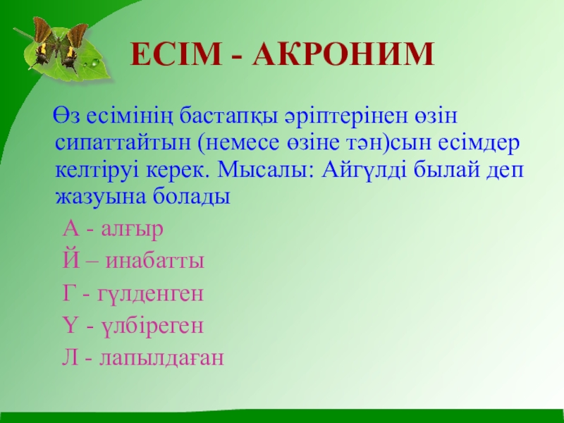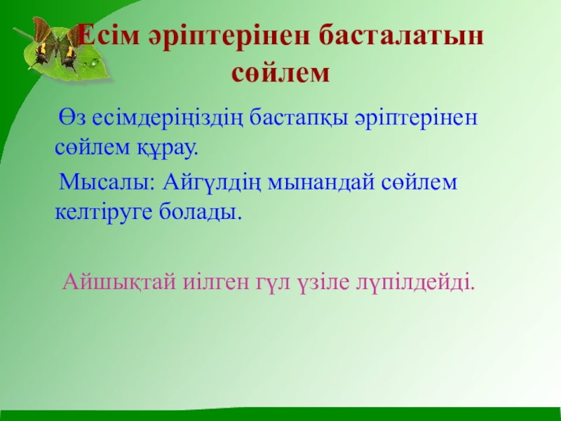 Слайд 26Есім әріптерінен басталатын сөйлем