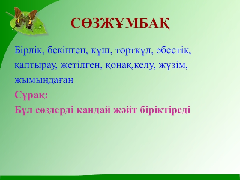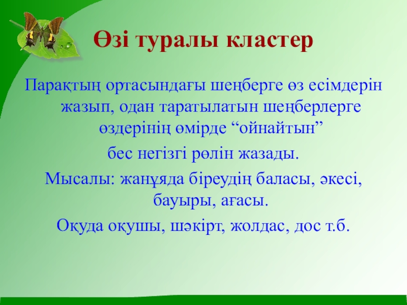 БЕС ТАРМАҚТЫ ӨЛЕҢ- өз ойларын сабақты қорытындылау мақсатында құрастыруы керек