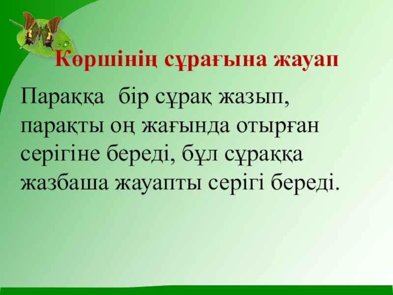 Параққа бір сұрақ жазып, парақты оң жағында отырған серігіне