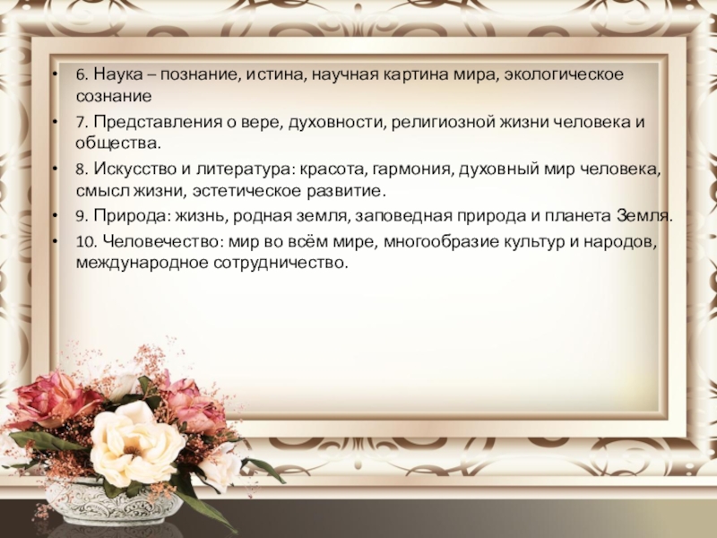 4. Семья – любовь и верность, здоровье, воспитание родителей, продолжение рода.