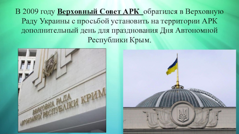 Слайд 4В 2009 году Верховный Совет АРК обратился в Верховную Раду Украины