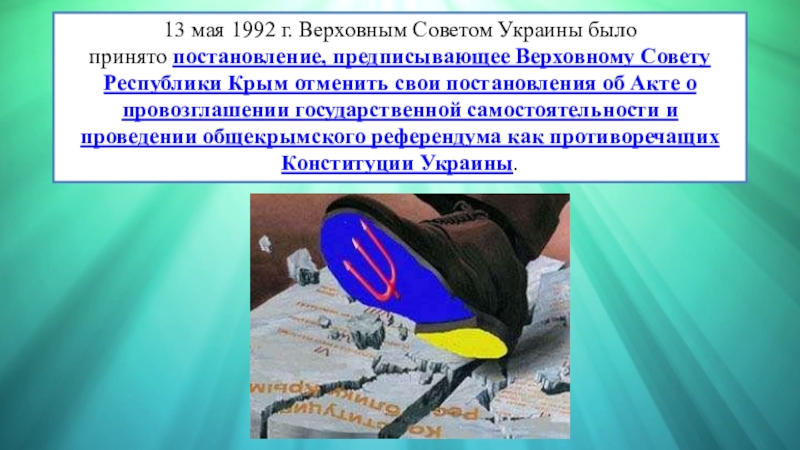 Слайд 305 мая 1992 г. Верховный Совет республики Крым принял Акт о провозглашении