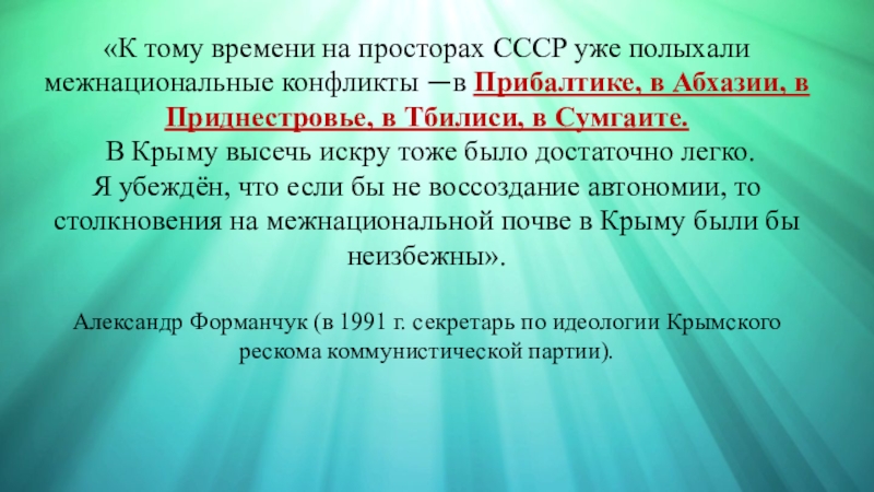 Я убеждён, что если бы не воссоздание автономии, то столкновения на межнациональной почве в Крыму были бы неизбежны».