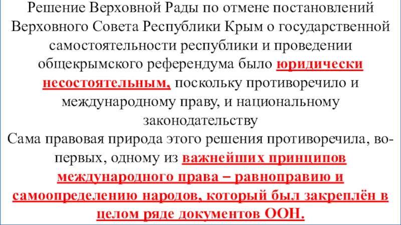 государственной самостоятельности республики и проведении общекрымского референдума было юридически несостоятельным, поскольку противоречило и международному праву, и национальному законодательству