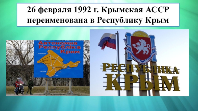 Слайд 3126 февраля 1992 г. Крымская АССР переименована в Республику Крым