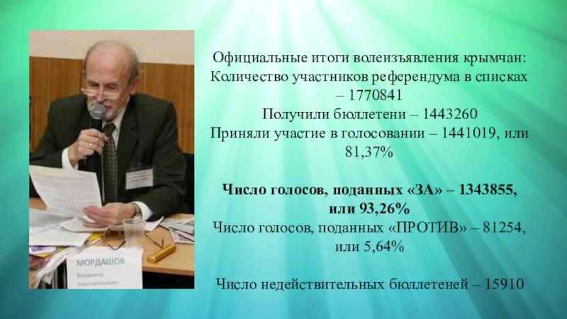 Слайд 22Официальные итоги волеизъявления крымчан: