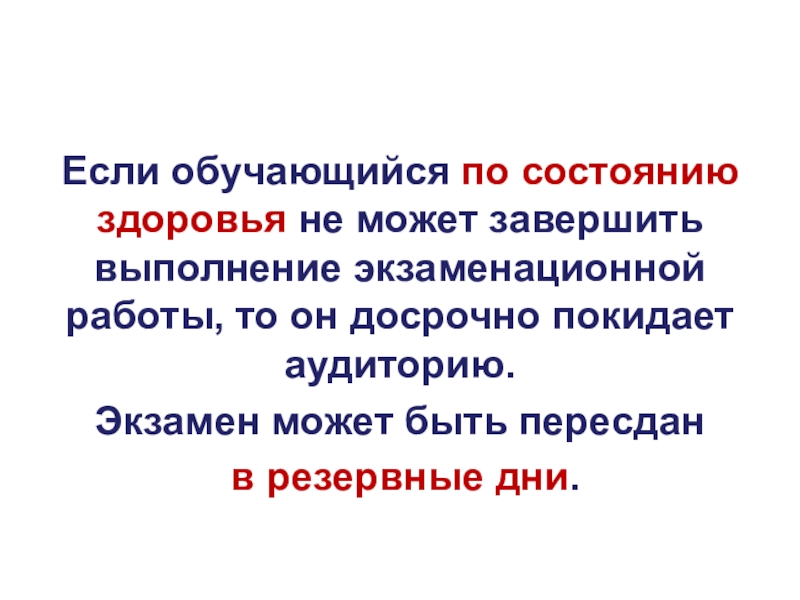 Если обучающийся по состоянию здоровья не может завершить выполнение экзаменационной работы,