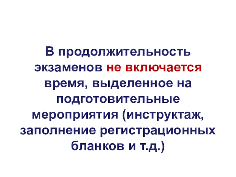 В продолжительность экзаменов не включается время, выделенное на подготовительные мероприятия (инструктаж,