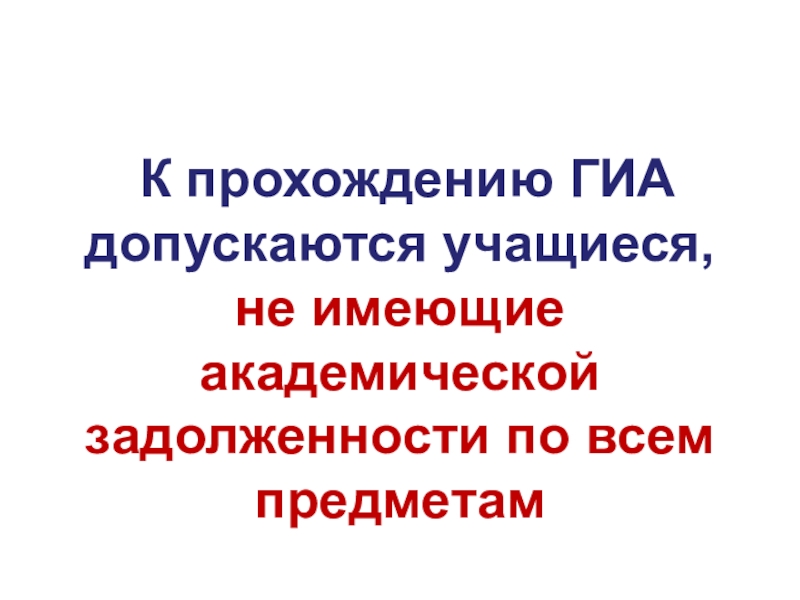 К прохождению ГИА допускаются учащиеся, не имеющие академической задолженности по