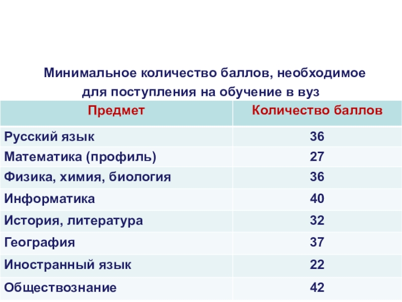 ЕГЭ-2018 Минимальное количество баллов, необходимое для поступления на обучение в вуз
