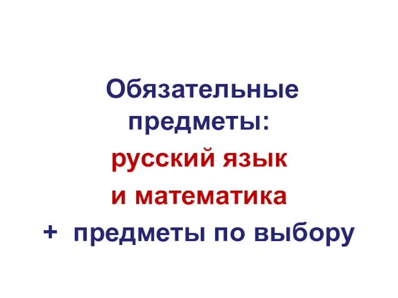 ЕГЭ-2019 Обязательные предметы:русский язык и математика+ предметы по выбору