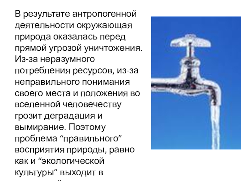 ответственность за ее сохранение, способность соизмерять любой вид деятельности с сохранением окружающей среды и здоровья человека, глубокую заинтересованность в природоохранной деятельности и грамотное ее осуществление.
