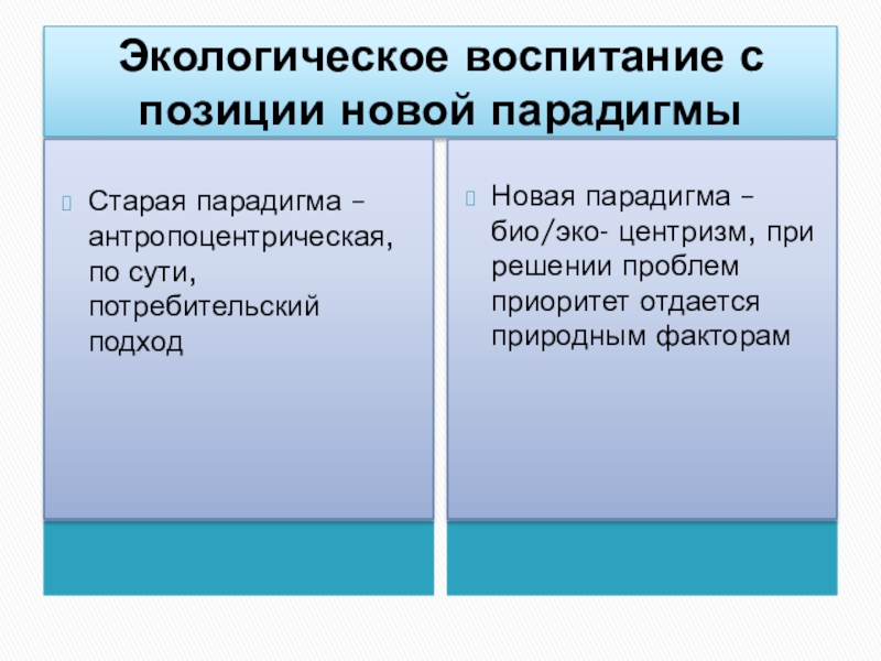 Новая парадигма – био/эко- центризм, при решении проблем приоритет отдается природным факторам