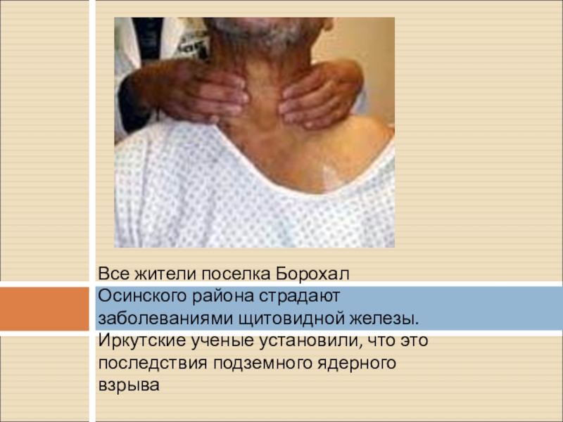 Слайд 7Все жители поселка Борохал Осинского района страдают заболеваниями щитовидной железы. Иркутские