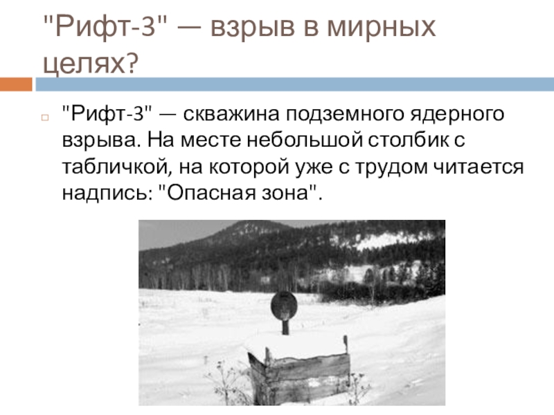 Слайд 8"Рифт-3" — взрыв в мирных целях?